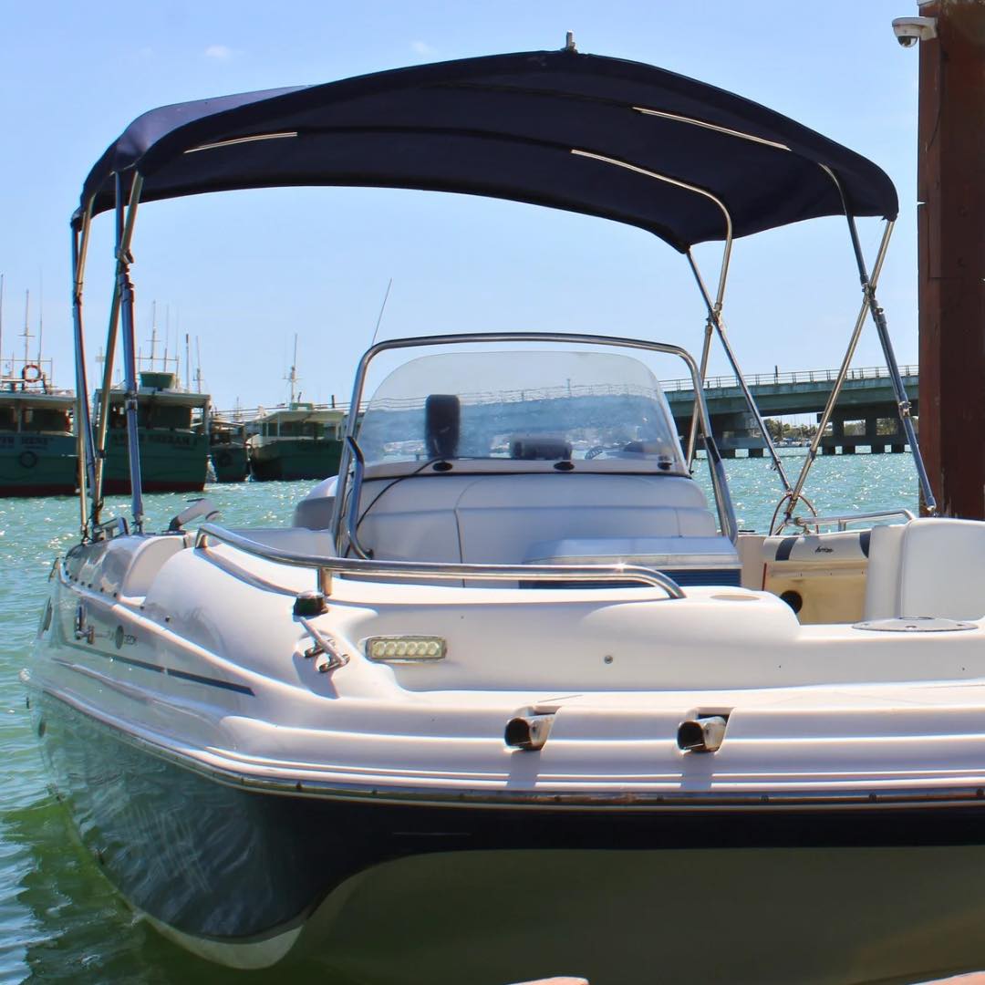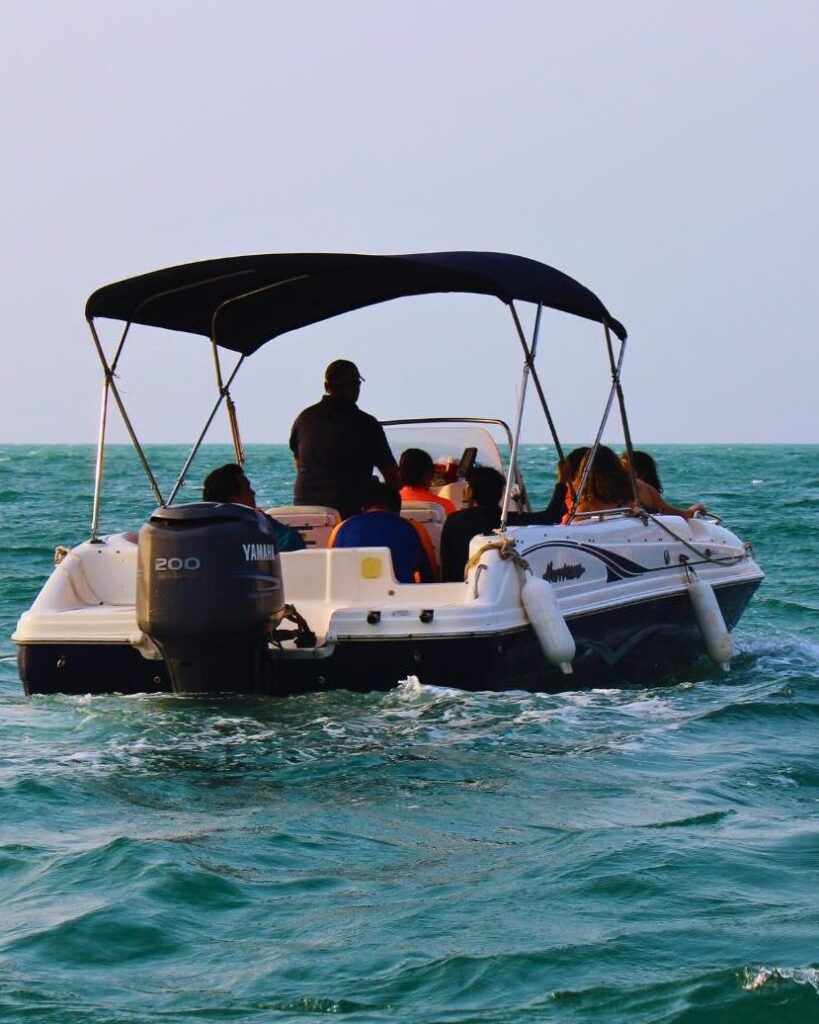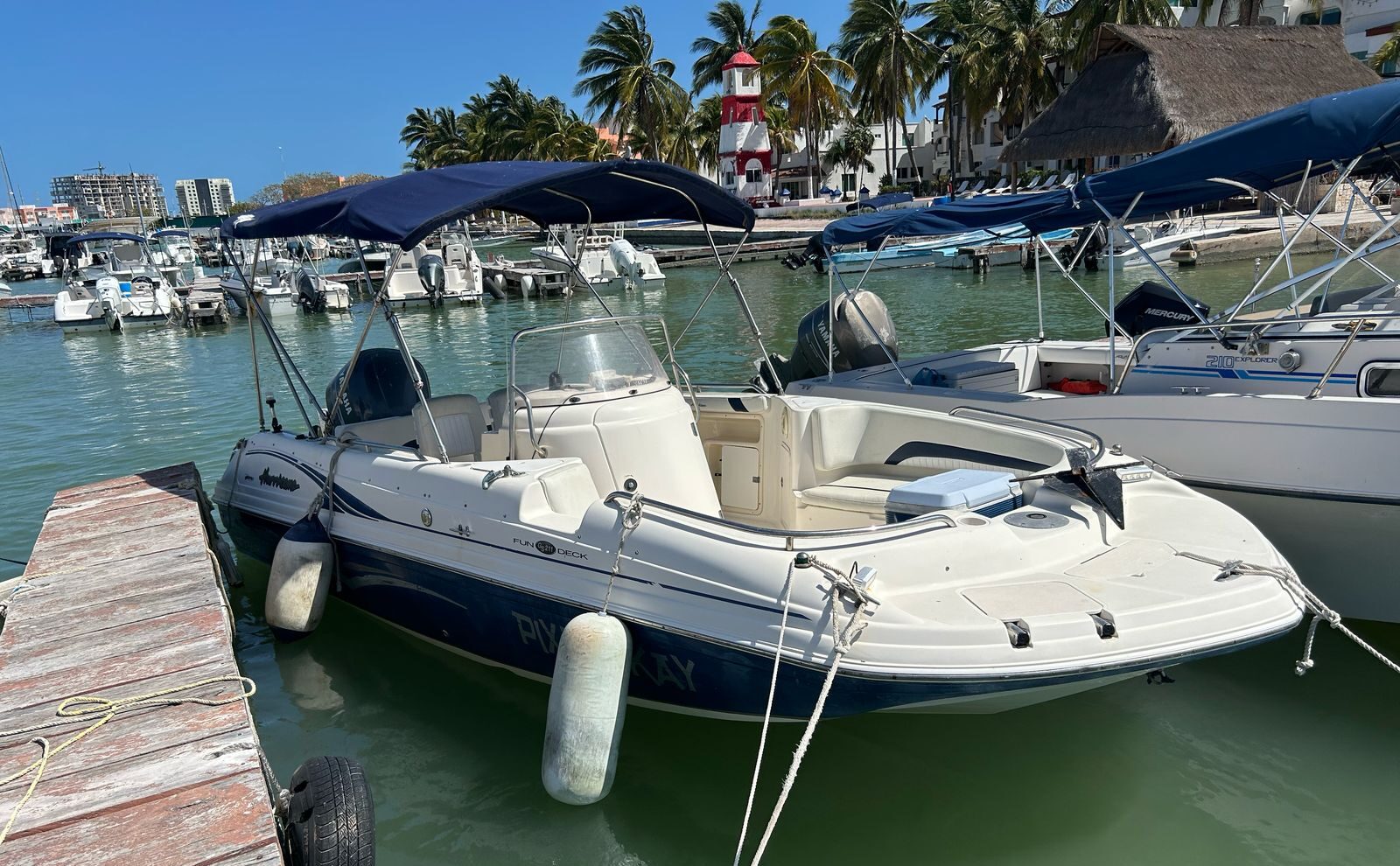 Pixan Kay es un bote Hurricane de 21 pies para 7 pasajeros mas capitan con motor de fuera de borda de 200 HP, luces de cortesia y de anclaje